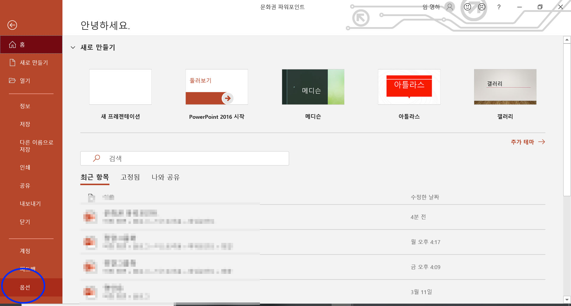파일>옵션 에 들어갑니다