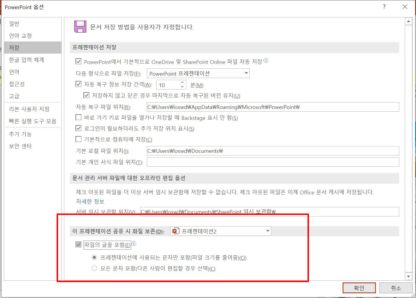 : 파워포인트 폰트 같이 저장하는법
