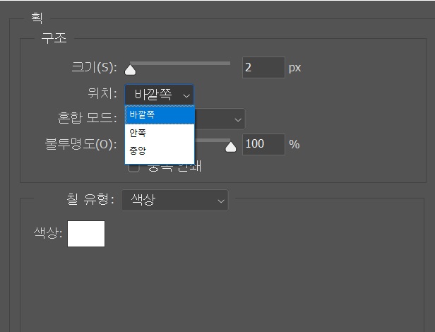 위치는 '바깥쪽'으로 선택하셔야