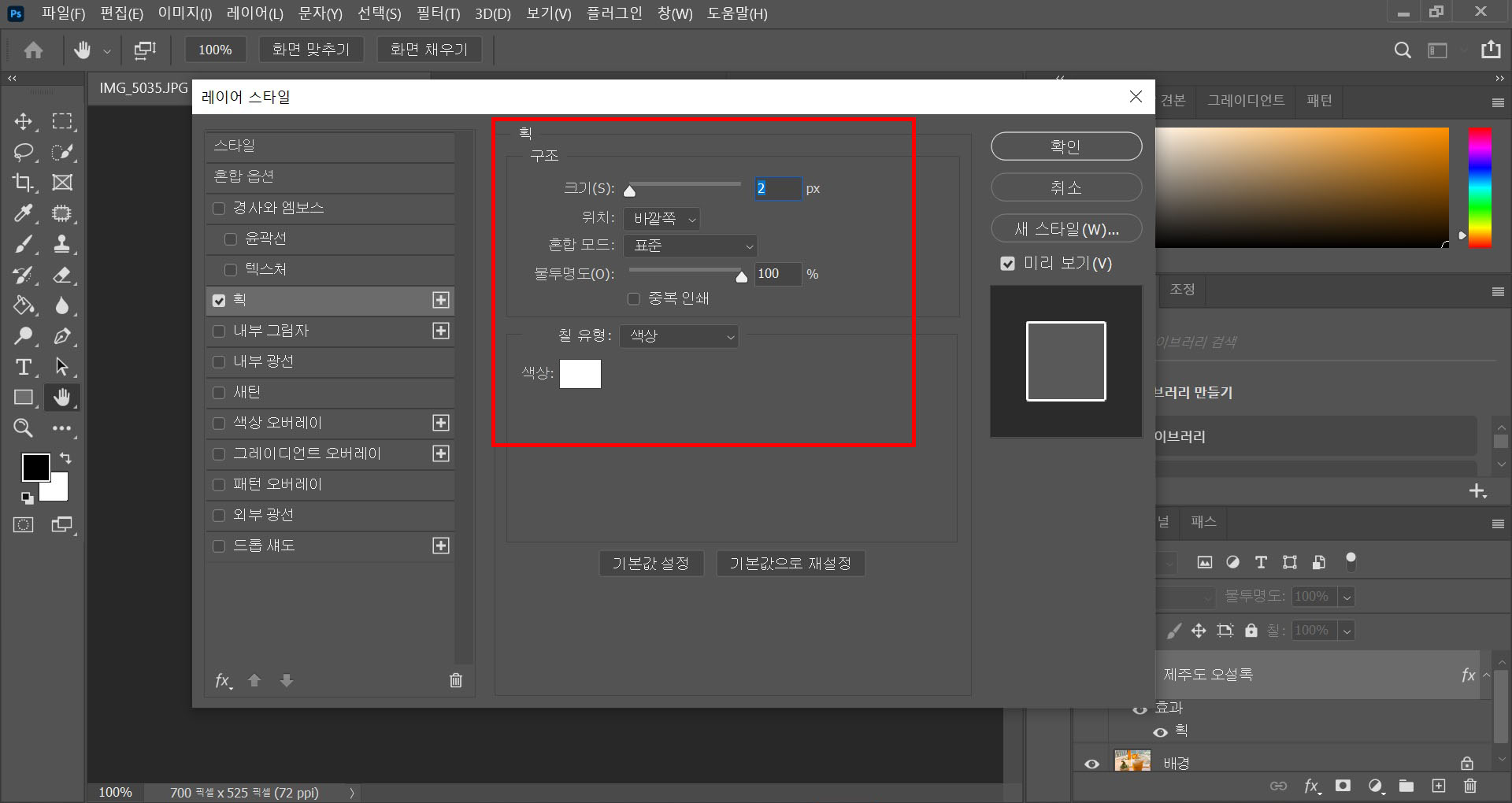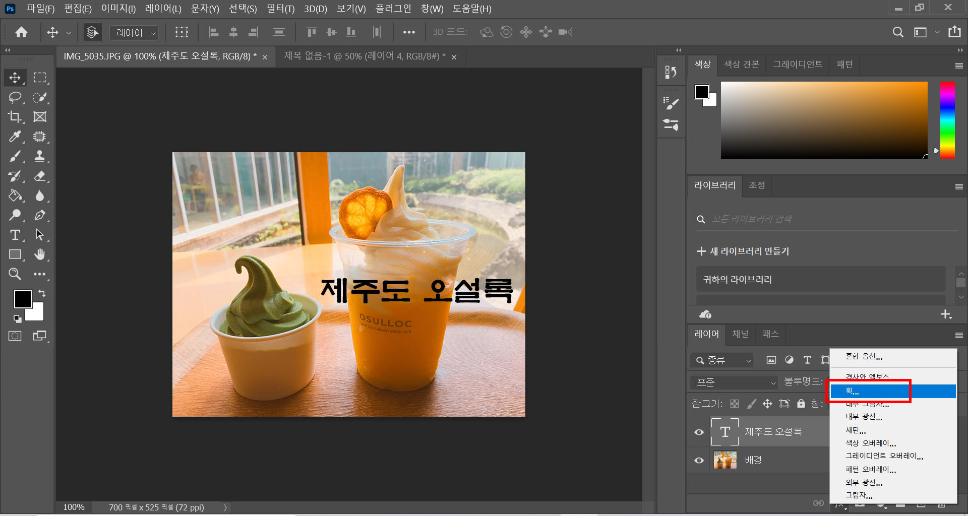 포토샵 글씨에 테두리 넣기