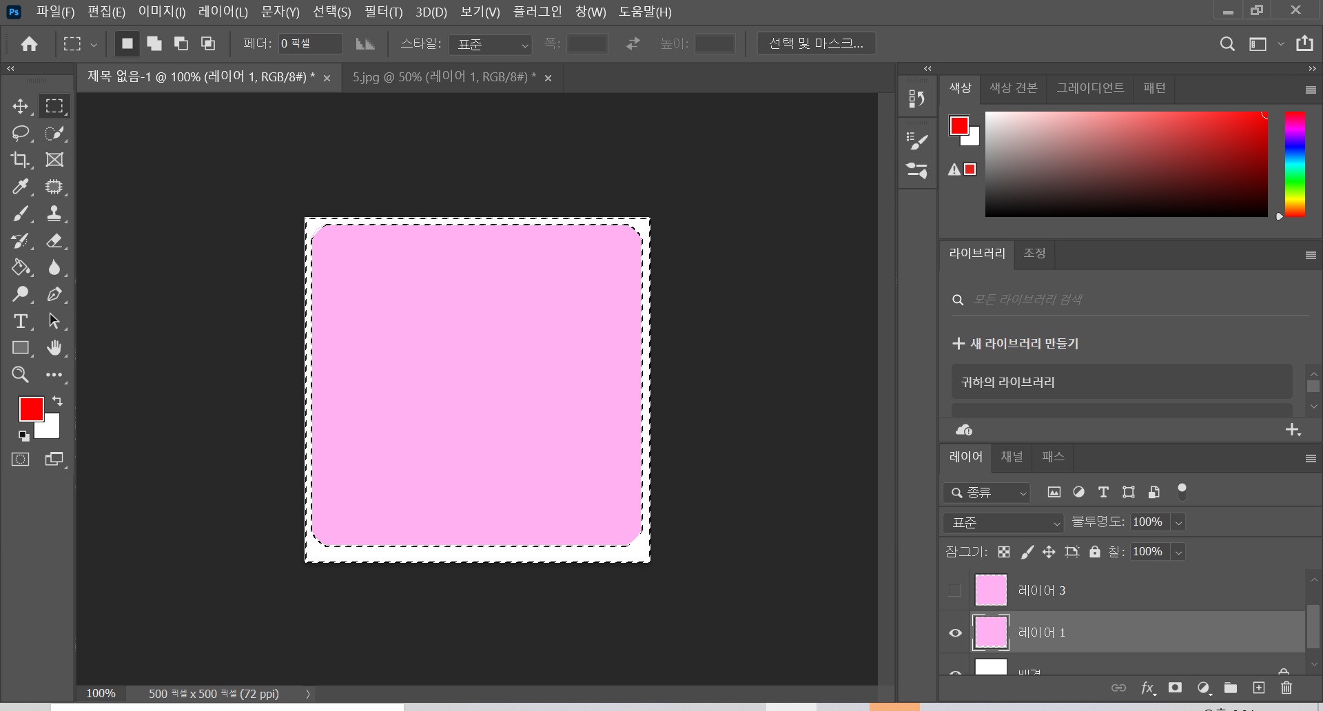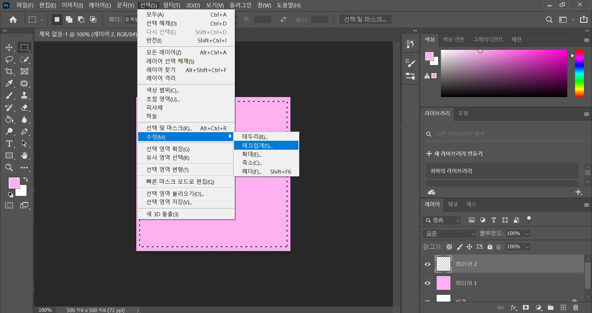 2. 왼쪽 사각형 선택 윤곽도구를 눌러