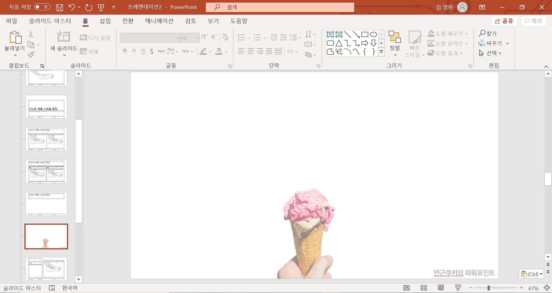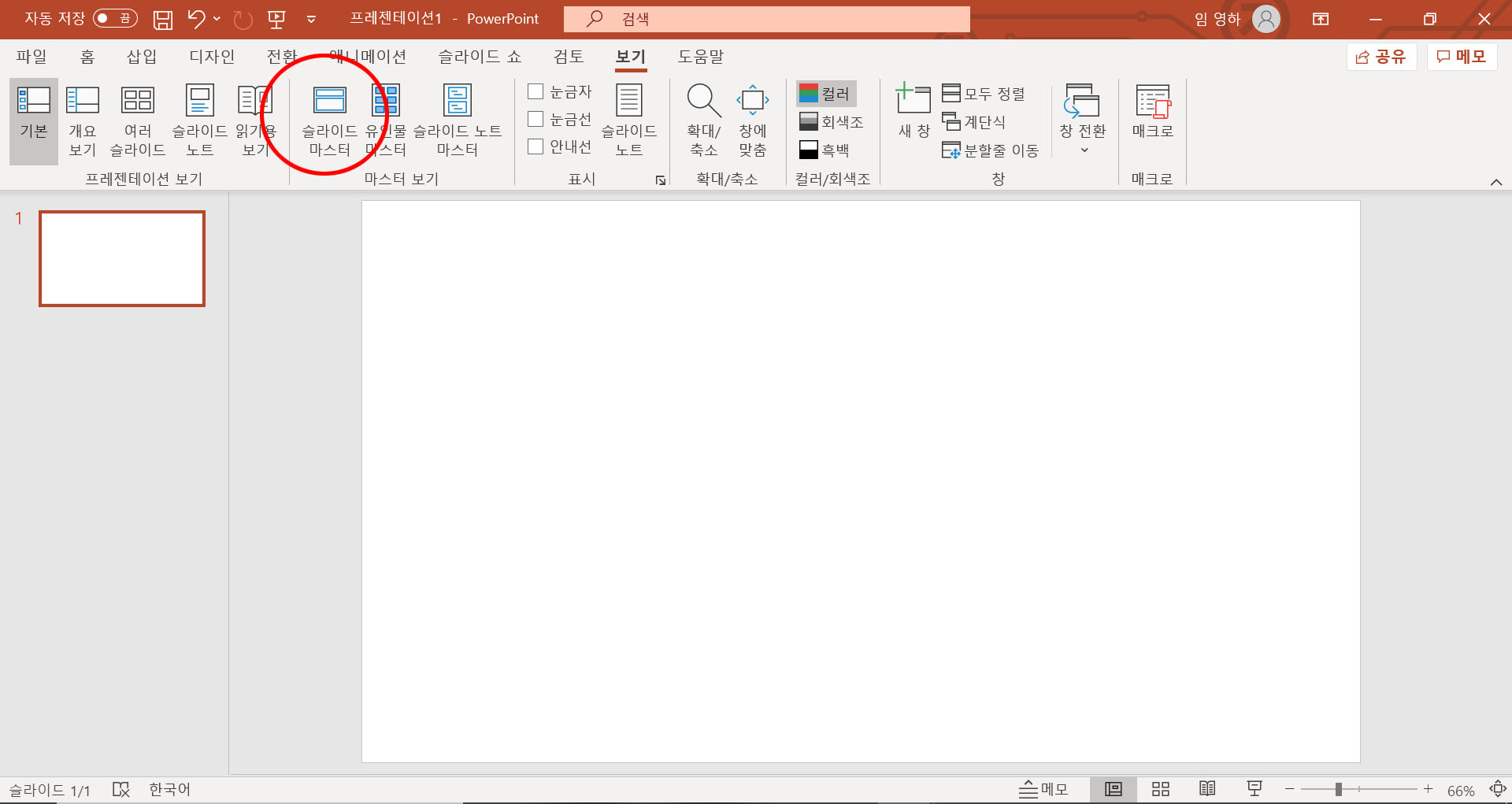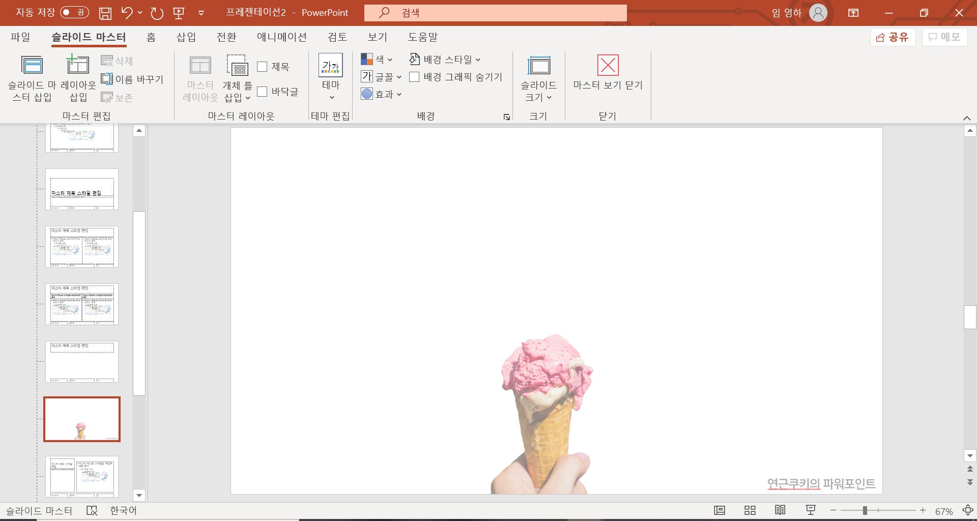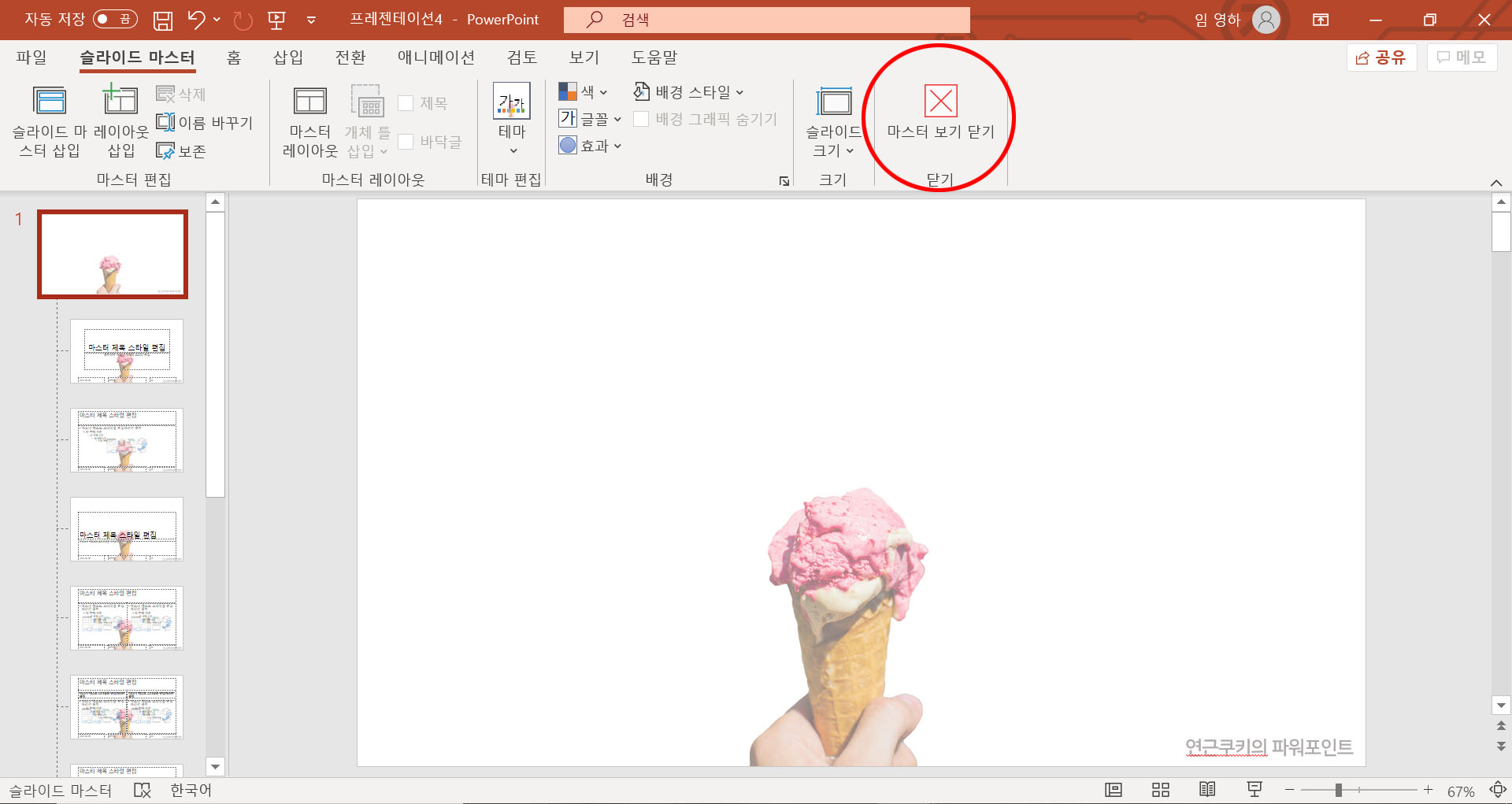모두 끝났으면 슬라이드 마스터 탭의