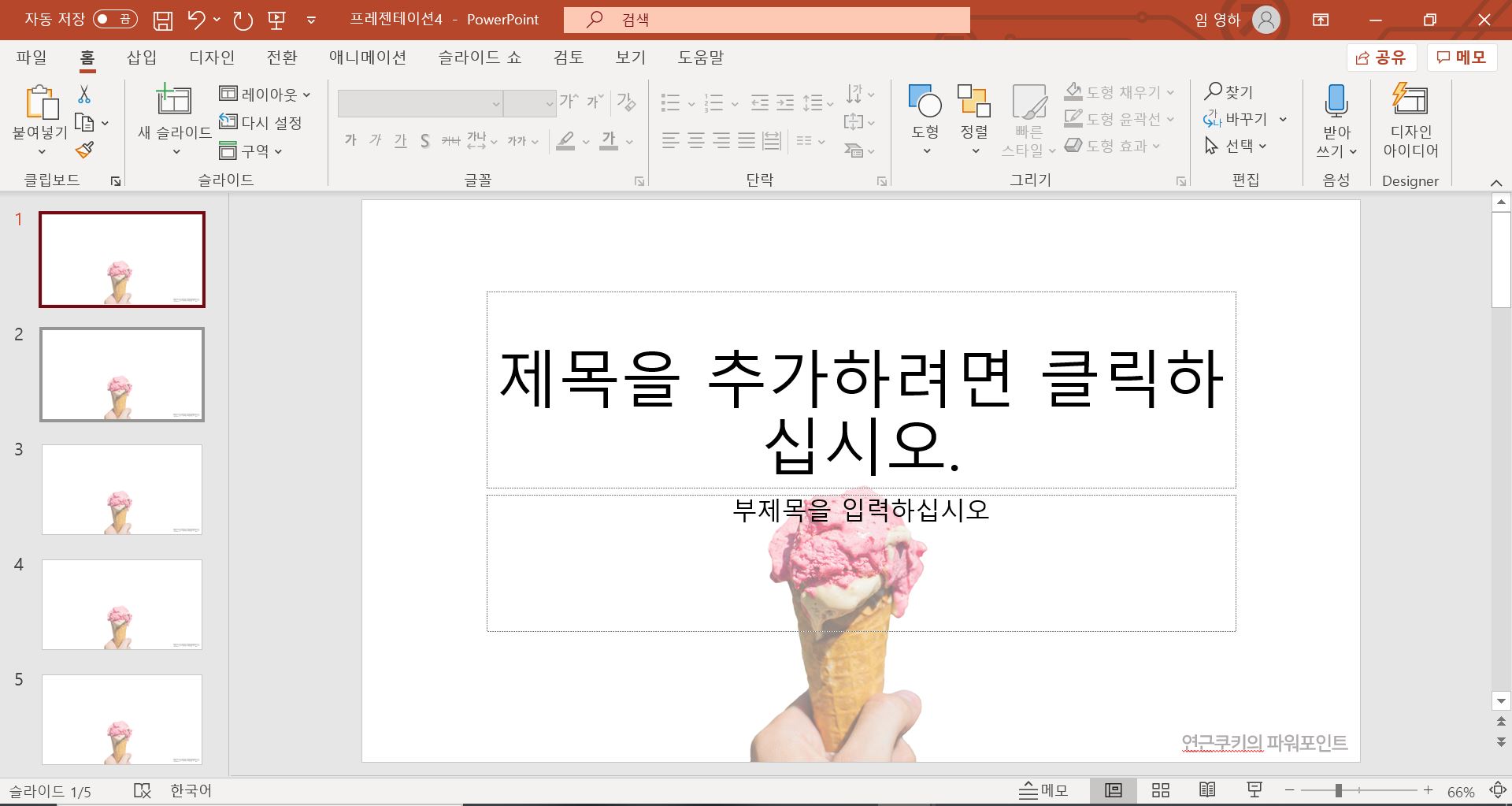 파워포인트를 켠 후 일단 이것저것 해보시면서