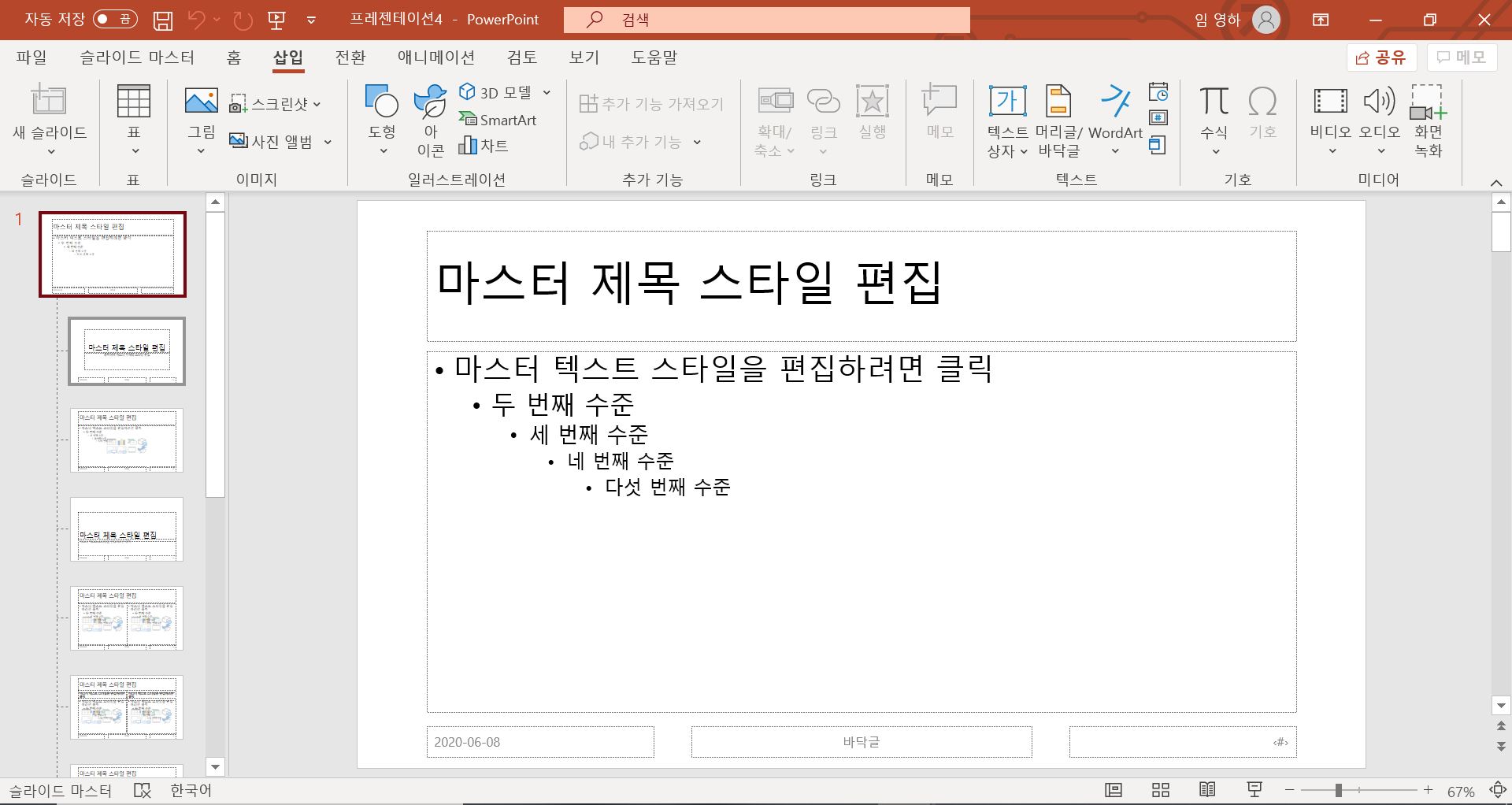 생성되는 모든 슬라이드에 삽입되는 거라고 생각하시면 됩니다.